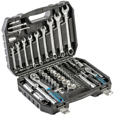 Comprehensive set – 85-piece socket spanner and bit set with 1/4 inch and 1/2 inch sockets, ratchets, fork ring wrenches and accessories for versatile applications High-quality CRV steel – made of deformation-resistant, drop-forged chrome vanadium steel, durable and robust, ideal for professionals and DIY enthusiasts Precise ratchet mechanism – ratchets with 72 locking pawls allow precise work and effortless turning even in hard-to-reach areas Robust steel case – tool set in steel case with metal locks and hinges, ensures safe storage and easy transport Compliant with DIN 3124 – tool according to European standard, ideal for technical work, repairs and maintenance on vehicles