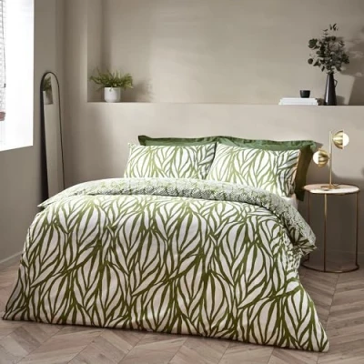 Featuring a linear leaf print design, on a crisp white background printed on a soft, cotton-rich fabric. Complete with an alternative reversible design featuring fronds on a natural green background. Easy to clean, quick drying and requires little ironing. Includes matching pillowcase for Single size, all other sizes include two matching pillowcases. This product is certified by OEKO-TEX which proves it has been made sustainably.