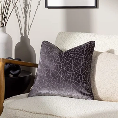 Amazon Featuring subtly cut velvet to create a unique crackled glass effect. Complete with a plain velvet reverse, piped trim and hidden zip closure. Made of 100% Polyester, making this cushion super soft, yet durable. Dry Clean and Do Not Iron Only.