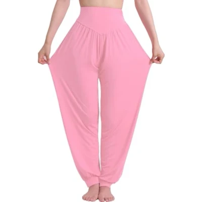 HOEREV Super Soft Modal Spandex Harem Yoga/ Pilates Pants, Lightpink, S