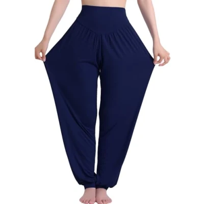Hoerev Super Soft Modal Spandex Harem Yoga Pilates Pants,Navyblue,L