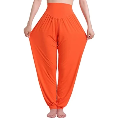 HOEREV� Super Soft Modal Spandex Harem Yoga/ Pilates Pants (Orange) (Medium)