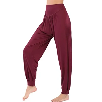 Hoerev Super Soft Modal Spandex Harem Yoga Pilates Pants,DarkRed,XXXL