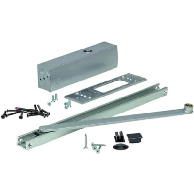 Hörmann Top door closer HDC35-1 EN 3-5 for mounting on the closing side (band opposite) of the door. Includes a slide rail, lever and mounting plate included. Meets the requirements of EN standard 1154 for door closers. Adjustable closing range from EN 3 to EN 5 for different door sizes and weights. Durable construction for durability and reliability., Weight: 5.5776952286 Pounds, Manufacturer: Hörmann