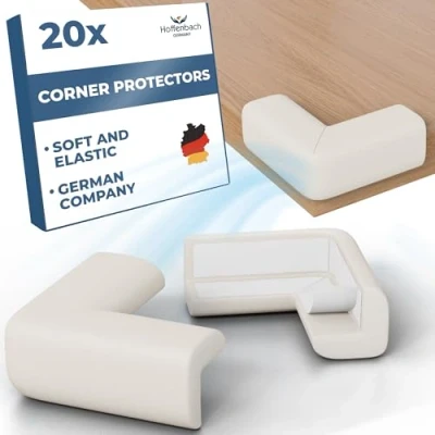 Hoffenbach 20x Baby Corner Protectors Soft Foam Edge Guard for Kids Self Adhesive Bumpers Child Safety, Furniture, Desks, Tables Safe & Durable White