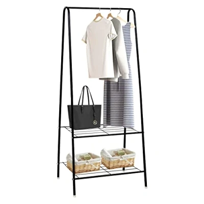 【Space-Saving Clothes Rack】The main function of this closet rack is to save space and make daily hanging convenient. It is perfect for your bedroom, guest room, kids room, living room, and even for your office. This industrial-like garment rack keeps your garments and accessories always organized and tidy, while providing strength and stability. 【Stable Structure】The clothing rack is made of highly resistant metal with premium heavy gauge chromium plating, which enhances protection against rust and corrosion. The plastic pads on its legs prevent it from scratching the floor. 【Simple Assembly】The closet rack is easy to dismantle, assemble and move, so this clothes hanger can be placed anywhere in your house. 【Excellent Loading Capacity】The bar can bear up to 20 kg of weight, allowing you to make full use of your home space by hanging clothes, hats, ties, and more. The two shelves can each bear 10 kg, providing even more space to keep your life organized. 【Material and Size】The clothes rack is made of metal and measures 150x35x59cm.