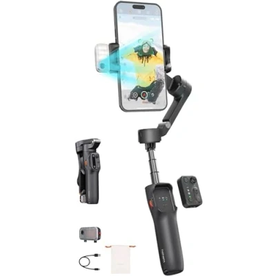 [Magnetic AI Tracking, Seamless Shooting] The 2024 Upgraded hohem iSteady V3 Gimbal features a magnetic AI tracker for smooth, face and body tracking without the need for the app, ensuring stable shooting. Activate or deactivate the gimbal’s AI vision sensor with specific gestures to maintain your subject in frame. Perfect for travel bloggers seeking to effortlessly capture every moment. [Advanced 3-Axis Stabilization] Equipped with the iSteady 8.0 anti-shake system, the iSteady V3 gimbal delivers exceptionally smooth footage, making it perfect for capturing dynamic activities. Its extended roll arm ensures wide-angle, keeping the motor out of the frame for a seamless recording experience. [Detachable Remote Controller] Pioneering in its design, our 3-axis stabilizer introduces a detachable remote controller for swift storage and magnetic handle attachment for instant charging. Ideal for family gatherings and group photos, making sure everyone is in the frame without hassle. [Extendable Rod & Tripod] Our gimbal stabilizer for iphone features an integrated extendable rod and tripod, providing versatile shooting options. The extendable rod stretches up to 8 inches, enabling you to effortlessly capture perfect selfies, distinctive low-angle pet shots, or simulate aerial views. [Magnetic Fill Light for Optimal Lighting] The hohem iSteady V3 gimbal, equipped with a magnetic fill light, provides options for cold, warm, and natural lighting, ensuring bright and stunning shots even in dimly lit surroundings. This iphone gimbal's new side wheel design allows for seamless brightness adjustment from 4% to 100%. Ideal for night street photographers and vloggers requiring consistent lighting. [Long Battery Life] Enjoy prolonged shooting sessions with the 13-hour battery life. The phone stabilizer is perfect for extended travels and full-day events, guaranteeing you never miss capturing crucial moments. [Hohem Joy App, Easy-to-Use Shooting Modes] Paired with the Hohem Joy app, our cell phone gimbal offers various shooting modes such as panorama, timelapse, and slow motion. With Moment creative templates, you can effortlessly create cinematic masterpieces with a simple hand movement. [Compact and Foldable Design] Crafted for convenience, the compact and foldable hohem iSteady V3 gimbal stabilizer easily fits into your pocket. Perfect for travel enthusiasts seeking a lightweight, portable stabilizer for spontaneous shooting on the move.