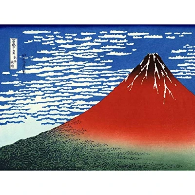 Hokusai Red Fuji Wind Sky Japanese Painting Premium Wall Art Canvas Print 18X24 Inch