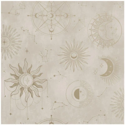 WallpaperDirectFeaturing an arrangement of suns, moons, planets, and constellations, this design invites you to look up, dream big, and get lost in the wonder of the cosmos! Delicate metallic detailing adds a luminous, shimmering quality to each celestial body, reflecting light and creating a sense of depth and movement across the wall. The result is a design that feels both mystical and modern, blending ancient symbolism with contemporary style.