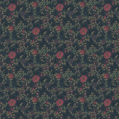 An Arts & Crafts inspired design featuring trailing flowers in an elegant and luxuriously textured finish. Seen here in the Navy colourway.