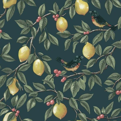 General description Bring the freshness of a lemon grove into your home with this charming botanical wallpaper. The delightful design features delicate lemon branches laden with ripe fruit, accented by cheerful red berries and playful little birds. The teal background creates a warm and inviting atmosphere, making it perfect for kitchens, dining areas, and breakfast nooks. Add a touch of nature's beauty to your home with this delightful and refreshing wallpaper. Technical specifications Roll Size: 10.05m x 0.53m Approx. Coverage: 5.2msq (56 sq.ft) Pattern Repeat: 53cm Match: Offset Colour: Teal Installation How To Apply: Paste The Paper Washable Good Light Fastness Wet Removable Important Information: Always read and adhere to the manufacturer's labels for instruction. Other information SKU: 13871 Please order enough rolls to complete your job as batch numbers cannot be guaranteed on a subsequent purchase.