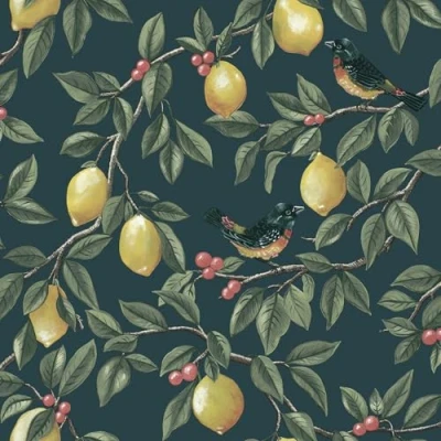 ManoManoGeneral description Bring the freshness of a lemon grove into your home with this charming botanical wallpaper. The delightful design features delicate lemon branches laden with ripe fruit, accented by cheerful red berries and playful little birds. The teal background creates a warm and inviting atmosphere, making it perfect for kitchens, dining areas, and breakfast nooks. Add a touch of nature's beauty to your home with this delightful and refreshing wallpaper. Technical specifications Roll Size: 10.05m x 0.53m Approx. Coverage: 5.2msq (56 sq.ft) Pattern Repeat: 53cm Match: Offset Colour: Teal Installation How To Apply: Paste The Paper Washable Good Light Fastness Wet Removable Important Information: Always read and adhere to the manufacturer's labels for instruction. Other information SKU: 13871 Please order enough rolls to complete your job as batch numbers cannot be guaranteed on a subsequent purchase.