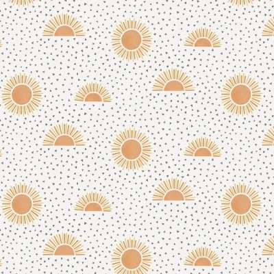 WallpaperDirectAn organic and quirky style, featuring full and half suns against a terrazzo effect background. Seen here in the White / Orange colourway.
