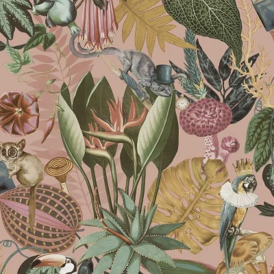 Holden Wonderland Wallpaper Tropical Exotic Animals Blush Pink/Multi 13400