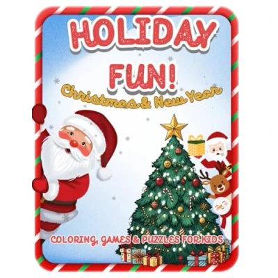 Holiday Fun: Coloring, Games & Puzzles for Kids: Coloring Fun Christmas New Year and Activity Book with Cute Designs, Mazes, Puzzles, Tracing