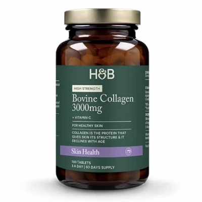 Holland & Barrett Bovine Collagen Tablet 3000mg Type I Peptides Hydrolysed with Vitamin C Hair, Skin Nails 180 Tablets, 0.23 kilograms
