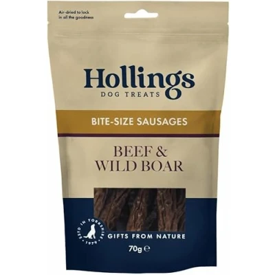 HOLLINGS GOURMET SAUSAGES - We all love a sausage! And these have been developed with canine cuisine in mind – ideal for enjoying at home or out on a walk, your dog is sure to love these gourmet, tasty treats - made with only the highest quality, natural ingredients. USE AS A TRAINING REWARD OR FOR A TASTY TREAT - Your dog will love these handy bite-sized sausages that can be cut up and used as a bite-sized training treats, whether at home or out on a walk, or simply treat your dog to something delicious to chew on. MADE WITH HIGH QUALITY INGREDIENTS - Air dried to maintain all the nutrition and taste, our gourmet sausages combine carefully sourced, high quality beef & boar that will leave tails wagging. A COMPLEMENTARY PET FOOD FOR ADULT DOGS OF ALL BREEDS - Our Gourmet Sausages are perfect to use as a natural treat or reward. These treats are not suitable for puppies, dogs with poor teeth or elderly dogs. GIFTS FROM NATURE - Hollings natural dogs treats are made from natural ingredients and are loved by dogs and owners alike. Established over 40 years ago, we are committed to offer the highest quality naturally healthy treats.