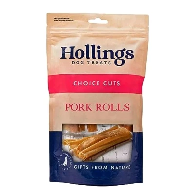 HOLLINGS CHOICE CUTS - 100% natural tasty treats inspired by the principle of minimising waste, created from your dog's favourite sources of protein: chicken, beef or pork. TO MENTALLY STIMULATE & PROMOTE CLEAN TEETH - These longer lasting chews are great for encouraging chewing which not only mentally stimulates your dog helping to reduce boredom, but also releases saliva to promote clean teeth. GRAIN FREE, NO RAWHIDE & HIGH IN PROTEIN - Our Pork Rolls are 100% natural, grain free and do not contain any artificial colours, flavours or preservatives. These meaty treats are also a great source of protein for your dog and a natural alternative to rawhide. A COMPLEMENTARY PET FOOD FOR ADULT DOGS OF ALL BREEDS - Treat your dog to something they will love to chew on - our Pork Rolls are great to use as a natural treat or reward. These treats are not suitable for puppies, dogs with poor teeth or elderly dogs. GIFTS FROM NATURE - Hollings natural dogs treats are made from 100% natural ingredients and are loved by dogs and owners alike. Established over 40 years ago, we are committed to offer the highest quality naturally healthy treats.