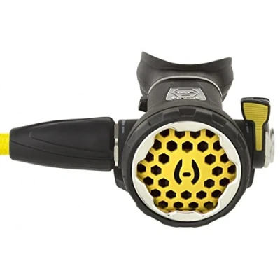 Pneumatically balanced chrome-plated brass valve results in smooth, easy breathing Reversible demand valve, can be converted from right-handed hose configuration to left handed hose configuration Adjustable Dive/Pre-Dive switch: Large Ventura lever has a soft rubber grip, which makes it easy to locate and use Ergonomic exhaust channels bubbles away from field of view and reduces exhaust effort Improved orthodontic mouthpiece with dual color tabs