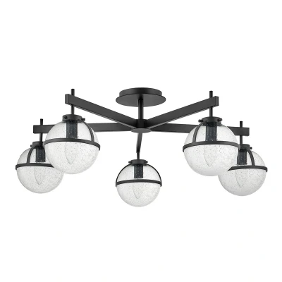 Hollis 5 Light Multi Arm Semi Flush Ceiling Lamp, Black IP44