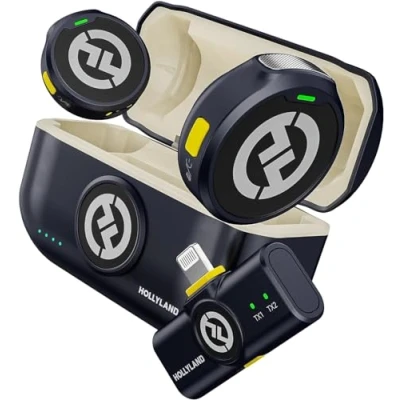 Hollyland Lark M2 Wireless Lavalier Microphone Compatible with iPhone, MFi Certified, 300m Transmission Range, Hi Fi Audio Quality, Noise Cancelling, 30H Duration, Lapel Mic for Livestream Vlog Black