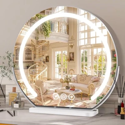Perfect Size: The size of the vanity mirror is 19x18'', it's not too bulky or too small that you can really see your whole face and upper chest easily. It's a perfect size for those who have a little vanity desk or don't want a big makeup mirror set back away from you on the edge of the vanity table. With this one, you can move it closer to you for a better view of your face/skin. 3 Color Lighting Modes and 10%-100% Brightness: Touch screen but very easy to use, the light up makeup mirror has 3 different light settings that can choose from warm lights, daylight and cool lights and also can be made brighter or dim. 108 high-quality LED bulbs have soft and eye-protected lights and can last for 90,000 hours. 360 Degree Rotation&Sturdy Metal Base: The lighted vanity mirror can rotate to whatever angle is needed, and it is on a sturdy metal base and feels solid, also with a non-slip mat on the bottom, so it won't tip over. Memory Function: This makeup mirror with lights has 3 smart touch buttons, and lighted makeup mirror is specially designed memory functionfunction keep your lights setting like your last use. Top Gift for Women: Birthday gift, Valentine's Day gift, Mother’s Day gifts, Christmas gifts for teen girls, family, wife, or girlfriend, or another special day gift.
