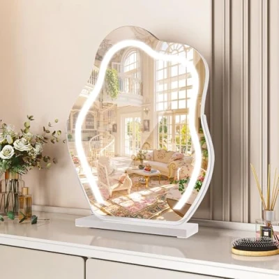 Perfect Size: The size of the vanity mirror is 22x18'', it's not too bulky or too small that you can really see your whole face and upper chest easily. It's a perfect size for those who have a little vanity desk or don't want a big makeup mirror set back away from you on the edge of the vanity table. With this one, you can move it closer to you for a better view of your face/skin. 3 Color Lighting Modes and 10%-100% Brightness: Touch screen but very easy to use, the light up makeup mirror has 3 different light settings that can choose from warm lights, daylight and cool lights and also can be made brighter or dim. 108 high-quality LED bulbs have soft and eye-protected lights and can last for 90,000 hours. 360 Degree Rotation&Sturdy Metal Base: The lighted vanity mirror can rotate to whatever angle is needed, and it is on a sturdy metal base and feels solid, also with a non-slip mat on the bottom, so it won't tip over. Memory Function: This makeup mirror with lights has 3 smart touch buttons, and lighted makeup mirror is specially designed memory functionfunction keep your lights setting like your last use. Top Gift for Women: Birthday gift, Valentine's Day gift, Mother’s Day gifts, Christmas gifts for teen girls, family, wife, or girlfriend, or another special day gift.