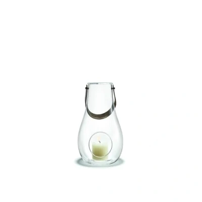 Holmegaard Lantern Height 29 cm Design with Light Made of Hand Blown Glass, Clear