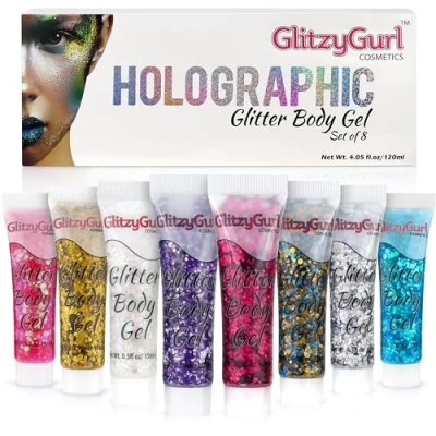 GLITTER IT UP! - Our glitter gels are created with only the finest pigments, creating the signature GlitzyGurl holographic shimmer that may be applied to your face, body, hair, or nails. IMPROVE YOUR FUNKINESS BY ADDING CHUNKINESS! - GlitzyGurl chunky glitter gel tubes stand out from the crowd. Easy and quick to apply, our glitter gels are the ideal accessory for festivals, parties, concerts, nightclubs, or simply to give a bit of glam to everyday life! READY TO USE - Because our glitter gels are pre-mixed and packaged in convenient tubes, you can carry your fabulous glittering appearance with you everywhere you go! PETA CERTIFIED CRUELTY-FREE Goods - Our products are cruelty-free. PACK OF 8 BEAUTIFUL COLOURS - This pack of 8 x 15ml glitter body gels comes in a rainbow of colours, allowing you to mix and match to your heart's pleasure.