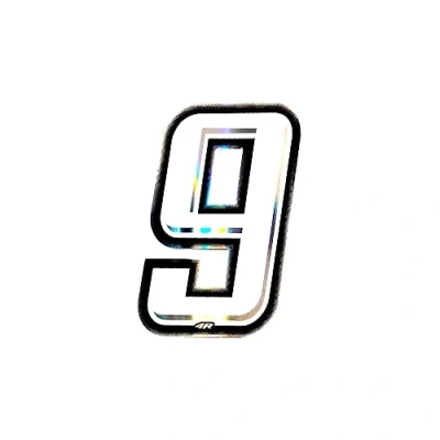 Holographic Racing Number 9, Slim, White, 10 x 6.5 cm