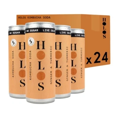 🥤 SUGAR FREE KOMBUCHA CANS: enjoy the refreshing taste of this sparkling kombucha drink brewed in the UK. Our sugar-free kombucha is packed with live cultures and offers all the benefits of traditional kombucha tea. Gut health never tasted so good! ✨ HEALTHY SPARKLING KOMBUCHA DRINK: each can of HOLOS Kombucha is naturally fermented, packed with probiotics to support your gut health and digestion. A perfect probiotic drink for those looking for a healthy fizzy drink without sugar or caffeine. 🫚 GINGER & TURMERIC: our kombucha cans come in a variety of delicious, bold flavours that make it easy to find your favourite kombucha drink. Our Ginger & Turmeric is fiery, sweet and warming. Sip your gut happy with this kombucha 24 pack. 🏃♀️ PERFECT FOR ON-THE-GO REFRESHMENT: these kombucha cans are ideal health drinks to keep in your bag, fridge, or desk. Ideal for a quick, refreshing, and healthy live culture drink wherever you are. Plus, each can provides 50% of your recommended daily allowance of Vitamin C, giving you an extra boost of immune support with every sip. 🌿 BREWED IN WEST SUSSEX BY A SMALL, INDEPENDENT BUSINESS: HOLOS Kombucha is proudly brewed in West Sussex, UK, by a passionate team. Every can of kombucha tea is crafted with care, ensuring you enjoy a high-quality, locally made product.