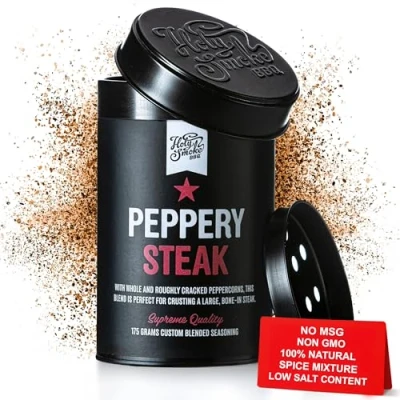 RICH PEPPERY STEAK SEASONING is ideal for crusting a large bone-in-steak as whole and cracked black peppercorns blend in a tenderising SPG seasoning flavour, taste buds are tickled with our BBQ rub meat seasoning that makes meat melt in your mouth. TRIPLE AAA QUALITY SOURCING provides that perfect taste and smell in this succulent fiery-flavoured brisket or steak rub seasoning with carefully selected ingredients like natural sea salt, chili flakes, and garlic. Ideal for barbecue beef and burger seasoning. GLOBAL DOP CERTIFIED GROWERS provide prime herbs, spices & seasonings we alchemise into small batch blends that arrive in your kitchen with a burst of vibrant flavour. Unforgettable seasonings begin with supreme ingredients and blending mastery. WHERE FLAVOR MEETS CRAFT our quest to prepare with heart our premium hand-made BBQ seasoning and spices for cooking . We seek small global growers with a passion like ours, to feed your passion for the most delicious BBQ meat on the planet. RICH PEPPERY STEAK IS SEASONED in the art of hand-crafted meat rubs and seasoning, formulating exact blends to tenderise your premium meat. We are Swedish spice masters, with our own restaurants for ten years, so trust that our BBQ rubs and spices are stellar.