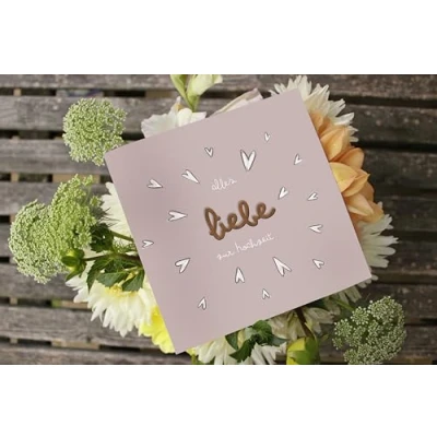 Holzgrusskarten Original Wedding Card for Special Congratulations on the Wedding, Motif Alles liebe zur Hochzeit, Hochzeitsbillet, Greeting Card, Postcard, Gift Couple