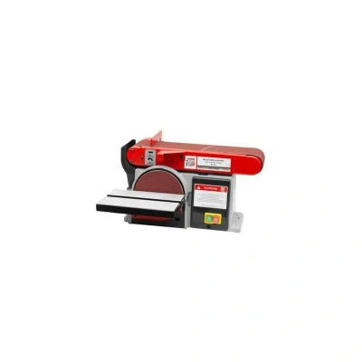 General description The HOLZMANN BT46230V Belt and Disc Sander is a versatile tool designed for precision sanding tasks. It features a pivoting aluminum table that can tilt up to 45°, allowing for various sanding angles. The sanding belt unit is adjustable from 0-90° both horizontally and vertically, making it suitable for a wide range of applications including longitudinal and front edges, round and mitre sanding, as well as flat surfaces. The machine is built on a sturdy grey cast iron bed and includes a mitre fence for accurate angle sanding. The quick clamping device enables fast and easy belt changes, enhancing productivity. Technical specifications Motor power S1: 250 W Voltage: 230 V Speed: 590 rpm Table dimensions: 150 x 230 mm Sanding belt dimensions: 100 x 915 mm Sanding belt speed: 490 min-1 Disc diameter: 150 mm Net weight: 18 kg Gross weight: 19 kg Included in delivery 1 sanding belt 1 sanding disc Mitre gauge