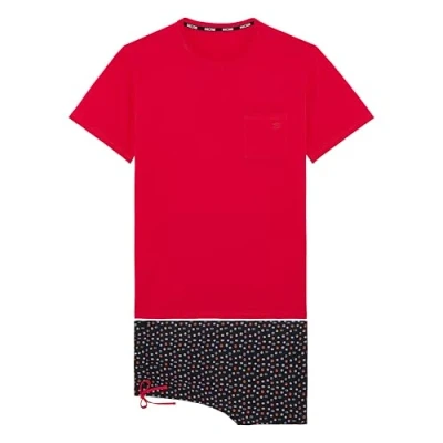 HOM Men's Pyjama Court Charli Pajama Set, Top: Red Plain Bottom: Multico Polka Dot Print Black Background, XXL