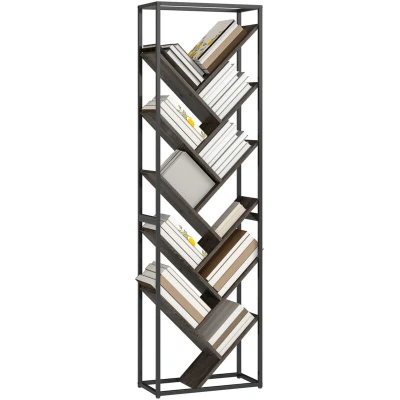 HOMCOM 10 Tier Tree Bookshelf Industrial Tall Bookcase Grey Black