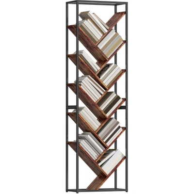 ManoManoHOMCOM 10 Tier Tree Bookshelf Industrial Tall Bookcase Rustic Brown Black