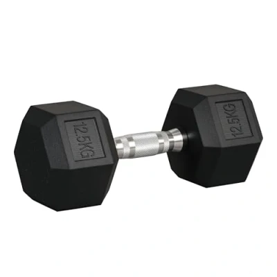 HOMCOM 12.5KG Single Rubber Hex Dumbbell Portable Hand Weights Home Gym Workout Fitness