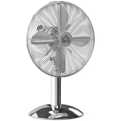 Cool off with this HOMCOM desktop fan. Fitted with 12 metal blades and a 35 W copper motor, it delivers a powerful breeze paired with the automatic 75° oscillation and manual 10° vertical tilt, this cooling fan provides plenty of cool air over a large area. It also has three speed settings, so you can set it to run how you want. Finished with a front grille to protect you and a top handle to carry around easily. Specifications: ● Colour: Silver Tone ● Material: Metal, Copper ● Overall Dimension: 35L x 26W x 45H cm ● Base Size: Ф20 cm ● Voltage: 220-240 V/50-60 Hz ● Power: 35 W ● Power Cord Length: 1.6 m ● Noise: ≤57 dB ● Item Label: 824-093V70SR Features: ● 35 W copper motor and 12 metal blades for a powerful air ● Three speed settings: low, medium and high ● 75° oscillation and 10° manual vertical tilt provides cool air to a greater area ● Front grill protects against direct contact with the blades ● Compact size fits desks, countertops and other small spaces ● Top handle to carry,