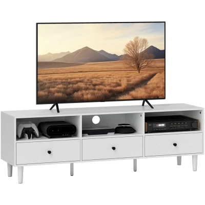 HOMCOM 140cm TV Stand Cabinet, Modern Unit Console Table for up to 75", with 3 Drawers, Open Storage Shelves, Cable Management, Media Entertainment Centre Living Room, Bedroom, White