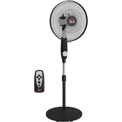 "HOMCOM 16"" Oscillation Cooling Fan with Remote Adjustable Height Black"