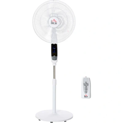 General description Stay comfortably cool during those hot summer afternoons and nights with the HOMCOM 16'' Pedestal Fan. This fan features a remote control for easy operation, making it perfect for both home and office use. With three variable speed settings and modes, you can enjoy personalized comfort. The fan offers 85° oscillation and a 20cm adjustable height range, allowing you to direct air precisely where you need it. A maximum 7.5-hour timer is ideal for nighttime use, ensuring a restful sleep. Technical specifications Color: Black, White Material: ABS/PP Plastic, Steel Overall Dimensions: 45W x 42D x 118-138H cm Base Size: Φ42 cm Cover Size: Φ40 cm Power Cable Length: 150 cm Voltage: 220-240V/50HZ Power: 50W Item Label: 824-023V70 Other information Certification: CE-EMC, LVD, RoHS, ERP Large round base for stability Modern design suitable for various settings Remote control operates within a 3m distance LED panel on the unit for additional control Assembly required