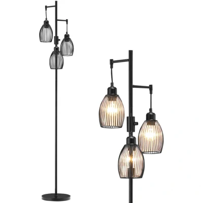 The HOMCOM Tall Lamp features a sleek black steel frame that exudes an industrial charm, making it an ideal addition to various settings, including your living room, bedroom, or office. Its three unique cage-like shades allow for a wide dispersion of light while contributing to the lamp's minimalist aesthetic. The open design of the shades adds visual interest and makes a bold statement in your decor.