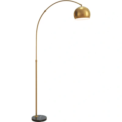HOMCOM 180cm Arc Floor Lamp for Living Room, Home Offices, Bedrooms, Modern Standing with Foot Switch, Faux Black Marble Base and Bell Shade, Gold Tone