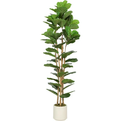 AmazonUltra-realistic touch: Features true-to-life PEVA leaves and natural wooden stems on this faux fiddle fig tree, creating an inviting living room escape that deceives both eyes and fingertips Effortless year-round green: Enjoy a maintenance-free fake tree, skipping water and sunlight yet always vibrant, bringing lasting peace to any low-light apartment or office corner Natural elegance, flexible design: With bendable metal wires for customisable shaping, this faux plant blends effortlessly into living rooms, bedrooms, or entryways, bringing balanced form, timeless elegance, and a soothing touch of greenery Stable beauty, worry-free design: Arrives in a modern white PP pot with a cement-weighted base for anti-tip stability, keeping your faux tree secure around little ones and pets while adding a fuss-free touch of natural charm to your home Product information: Overall dimensions: 55L x 55W x 180H cm. Base size: Φ18 x 17H cm. No assembly required