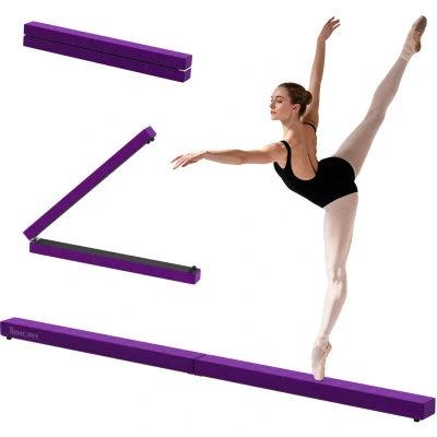 HOMCOM 2.4M 8FT Gymnastics Folding Balance Beam Home Gym Training Exercise Sports Purple