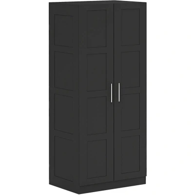 HOMCOM 2 Door Wardrobe for Bedroom, Double with Shelves and Hanging Rail, Modern Bedroom Furniture, Black