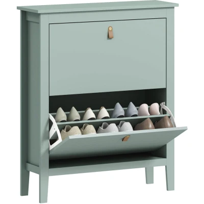 General description The HOMCOM 2 Drawer Shoe Cabinet is designed to provide a stylish and functional storage solution for your hallway or entryway. With its elegant green finish and flip doors, it adds a touch of modernity while keeping your shoes organized and out of sight. Other information