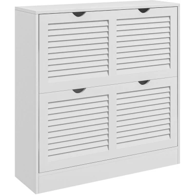 General description The HOMCOM Slim Shoe Storage Cabinet is designed to keep your entryway organized and clutter-free. Featuring a sleek white finish, this cabinet includes two flip drawers that provide ample space for storing shoes while maintaining a stylish appearance. Other information