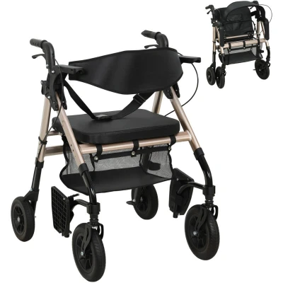 ManoMano HOMCOM 2-in-1 Mobility Walker with Seat, Foldable Rollator with Footrests